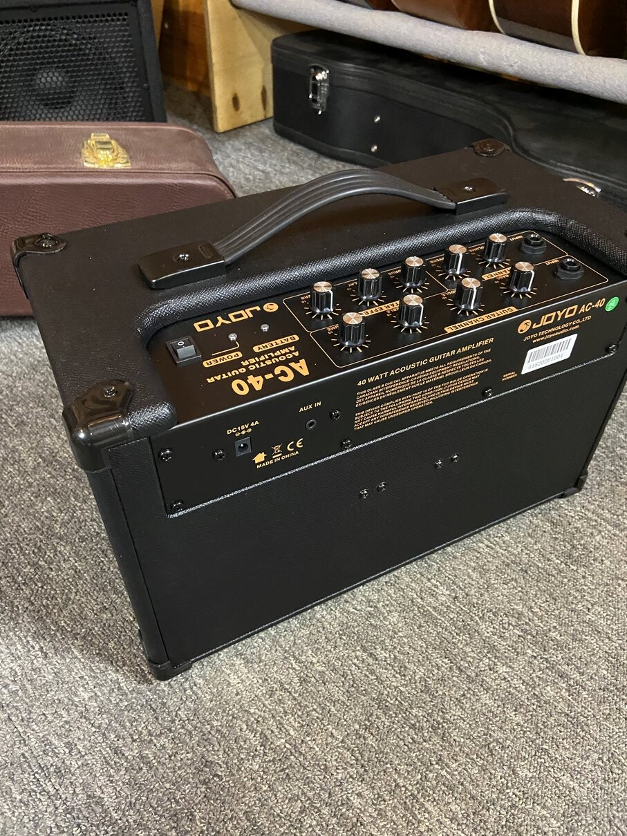 JOYO AC-40 - усилитель, разработанный со схемой усиления специально для акустических гитар, благодаря этому звук характеризуется красивымы и яркими высокими частотами с богатыми средне-низкими частотами. Мощность 20 Вт (20 Вт + 20 Вт) удовлетворит потребности для занятий дома, также её достаточно и для небольших живых выступлений. Гитарная часть AC-40 имеет 3 встроенных DSP-эффекта: Chorus, Delay и Reverb. Все эффекты могут использоваться одновременно.