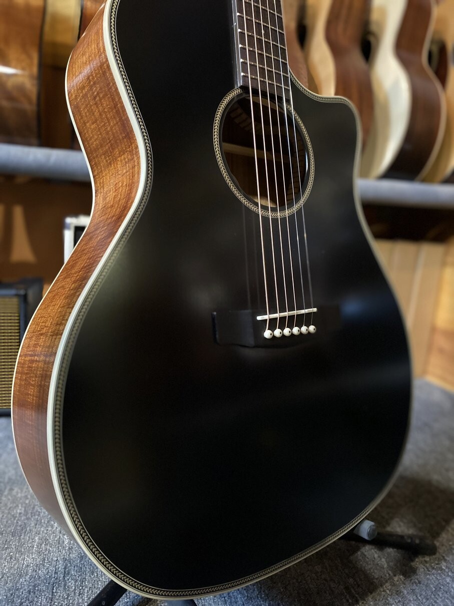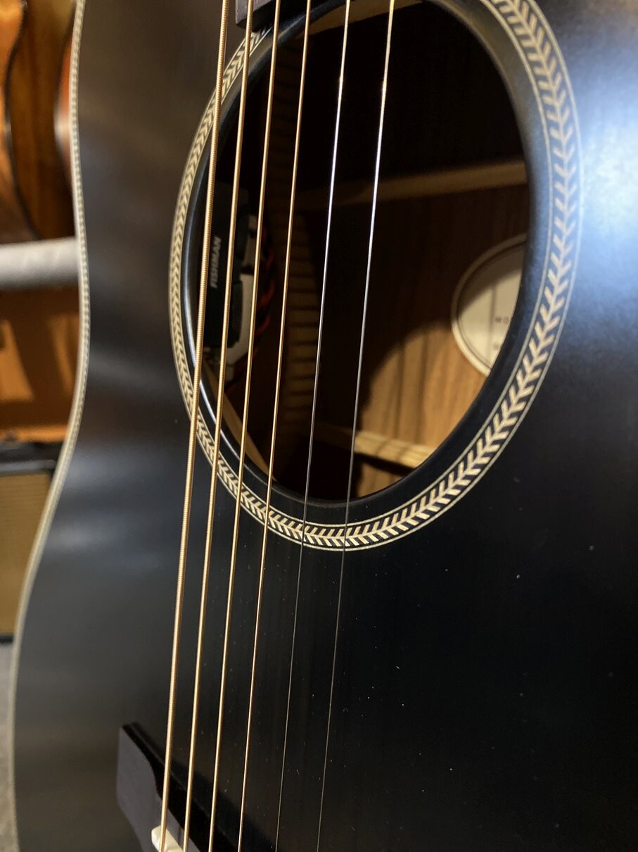 AVT - технология состаривания дерева до винтажного состояния. На этом инструменте она применена к верхней деке и пружинам, что дает звук состаренного инструмента прямо из коробки. Верхняя дека здесь еще и окрашена в солидный черный цвет.