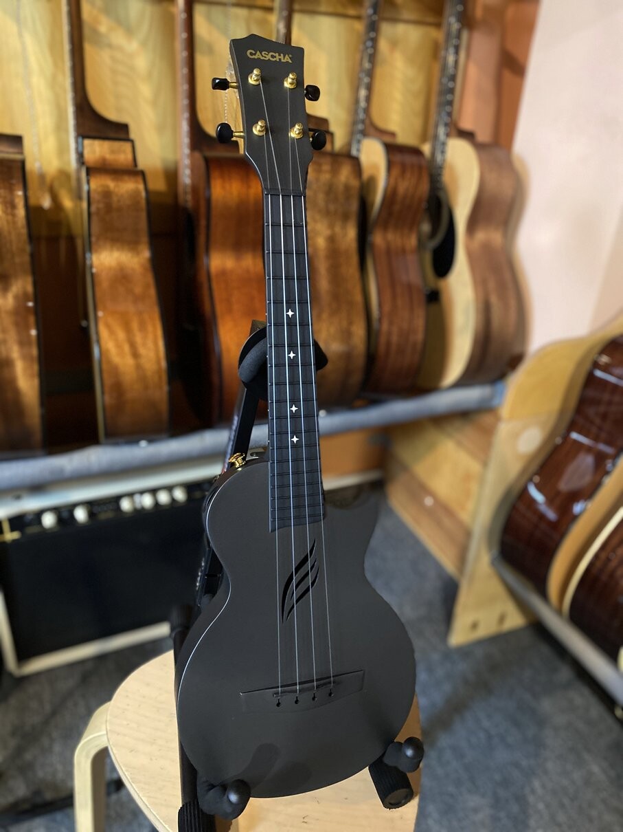 Укулеле Cascha Carbon сделан из углеродного волокна от головки грифа до корпуса. Такой инструмент легко чистить и в целом он более устойчив к внешним воздействиям.