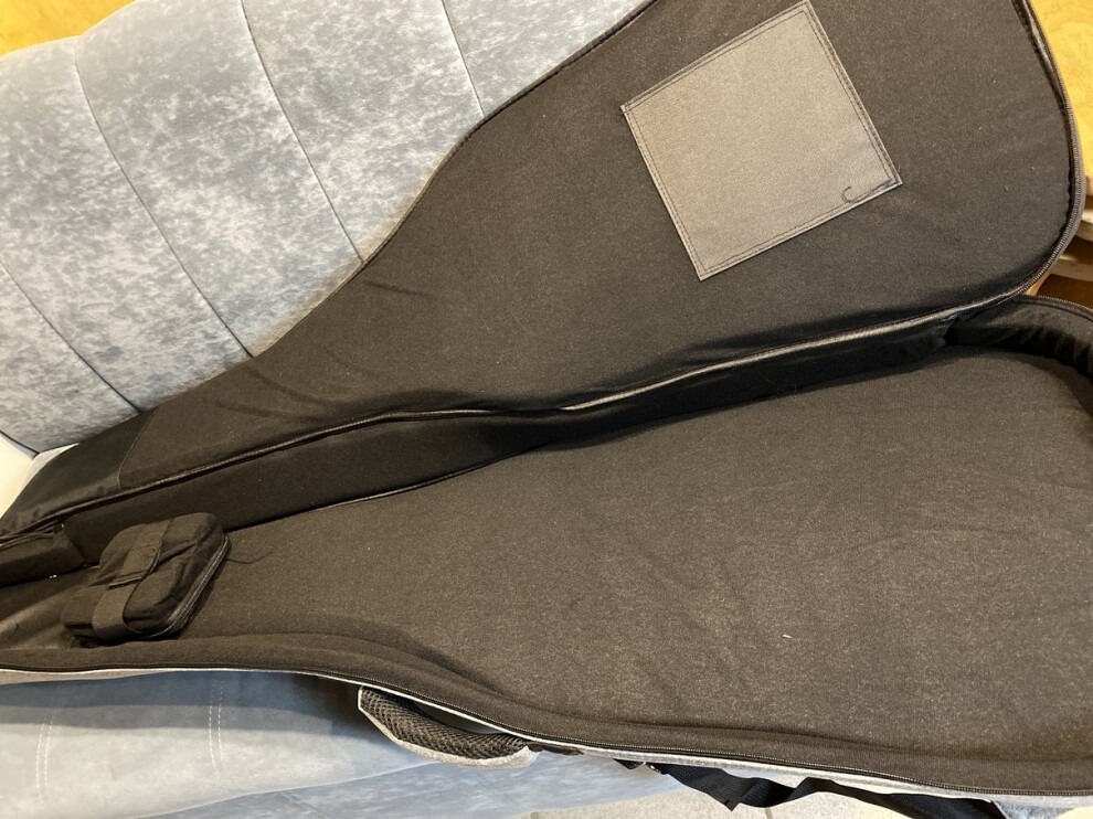 Внутри чехол отделан велюром, под голову грифа есть дополнительная подушечка и фиксатор головы грифа.
