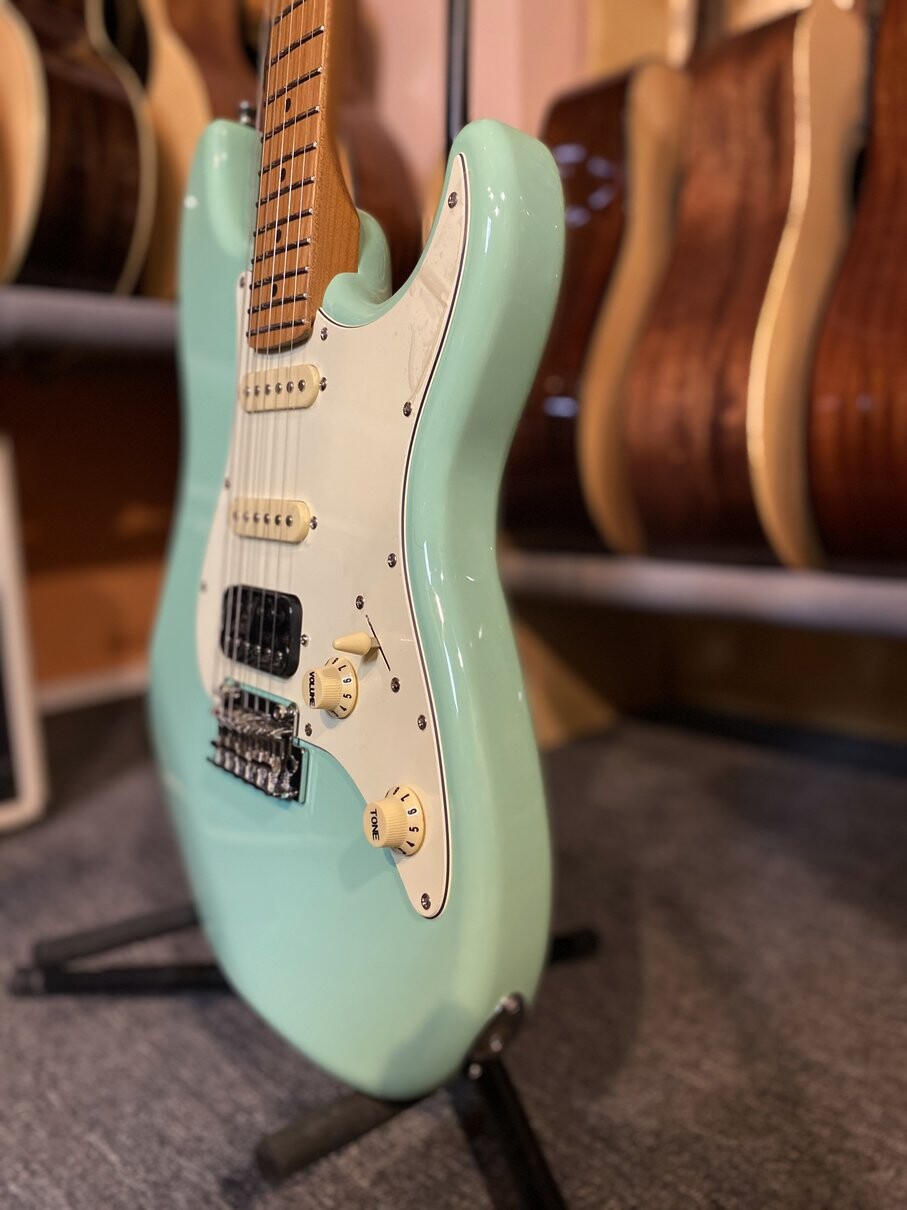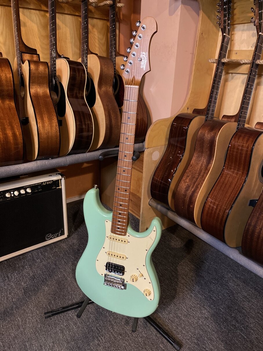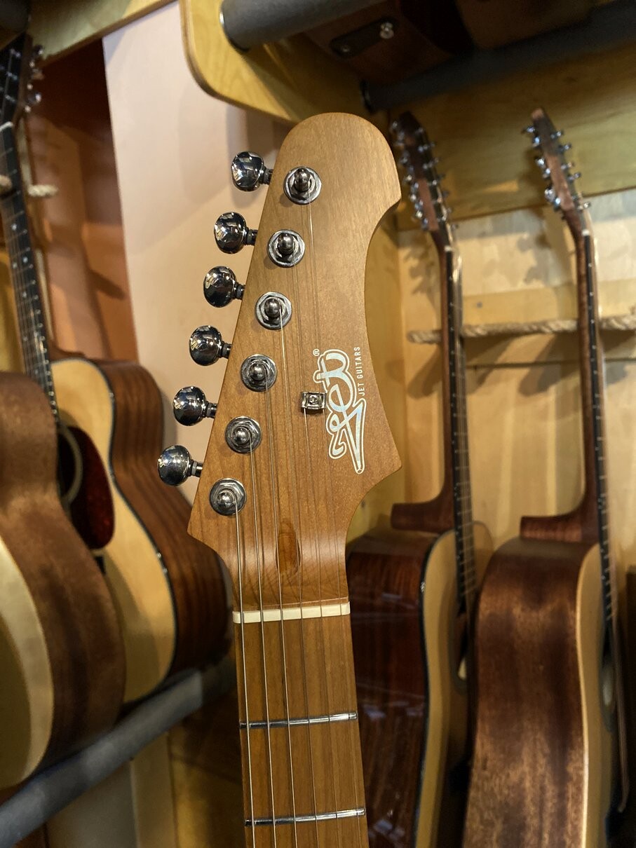 Гриф и накладка на гриф выполнены из печеного клена (roasted maple). При такой обработке поры дерева максимально сжимаются и гриф становится гораздо менее подвержен изменению влажности. Плюс такое дерево выглядит очень красиво.