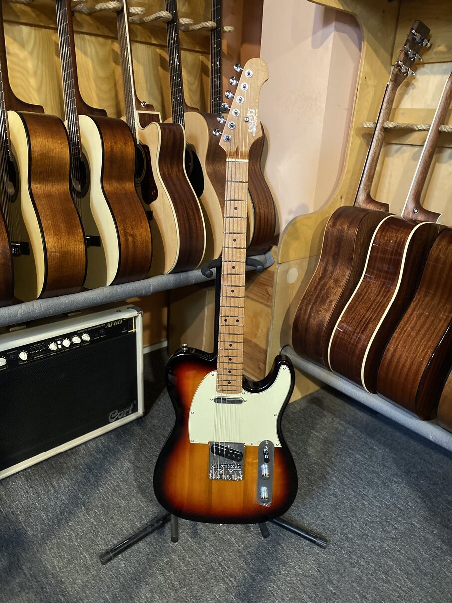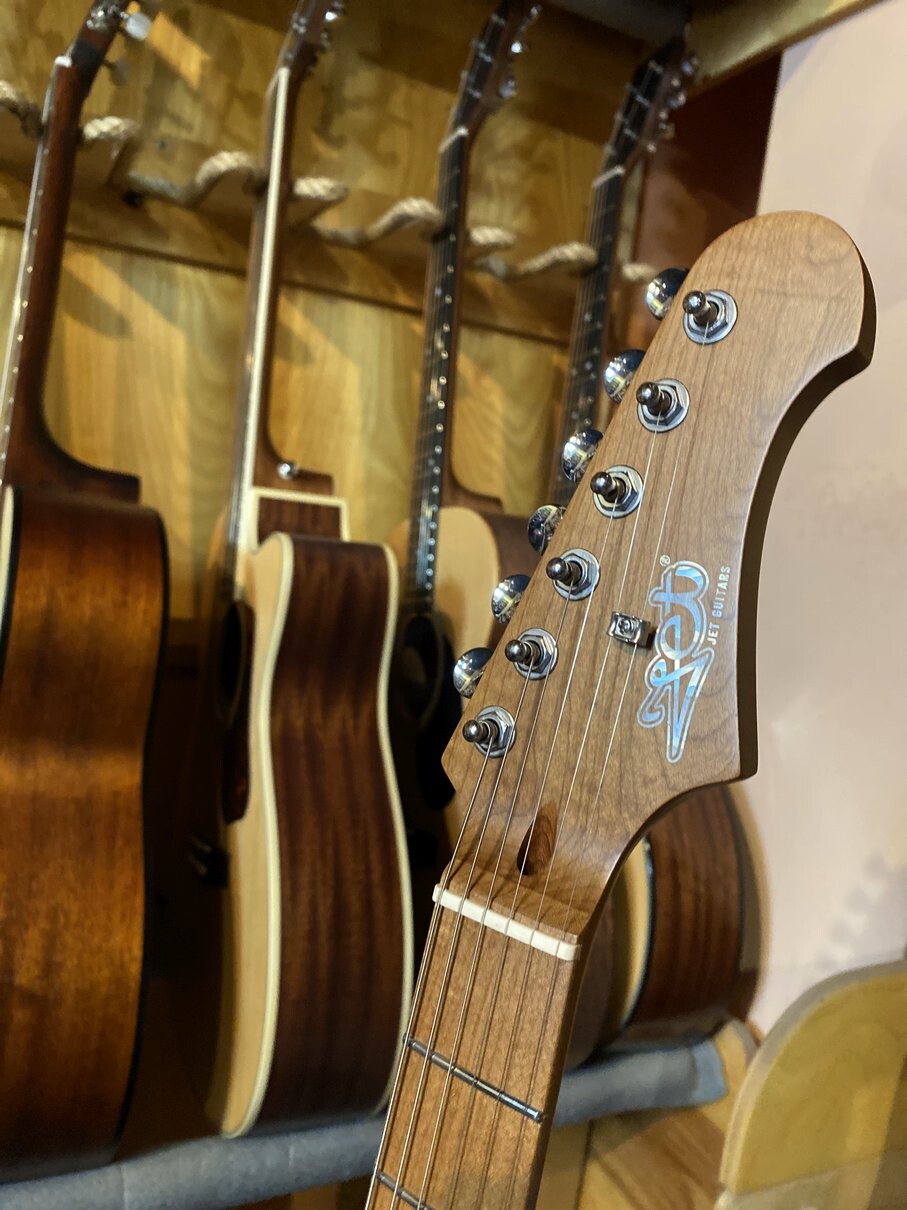 Гриф и накладка на гриф выполнены из печеного клена (roasted maple). При такой обработке поры дерева максимально сжимаются и гриф становится гораздо менее подвержен изменению влажности. Плюс такое дерево выглядит очень красиво.