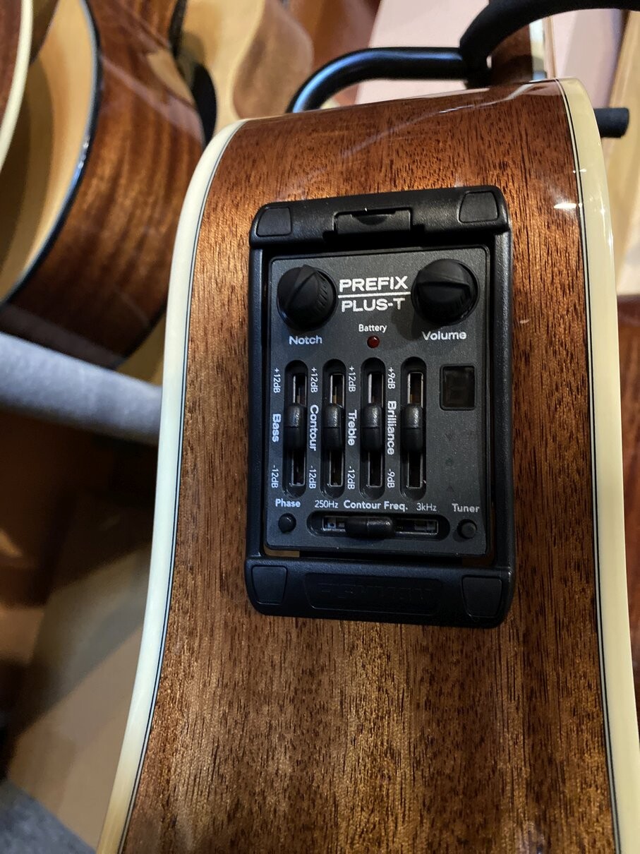 На этой гитаре установлена дорогая электроника Fishman Prefix Plus T EQ со звукоснимателем Matrix.