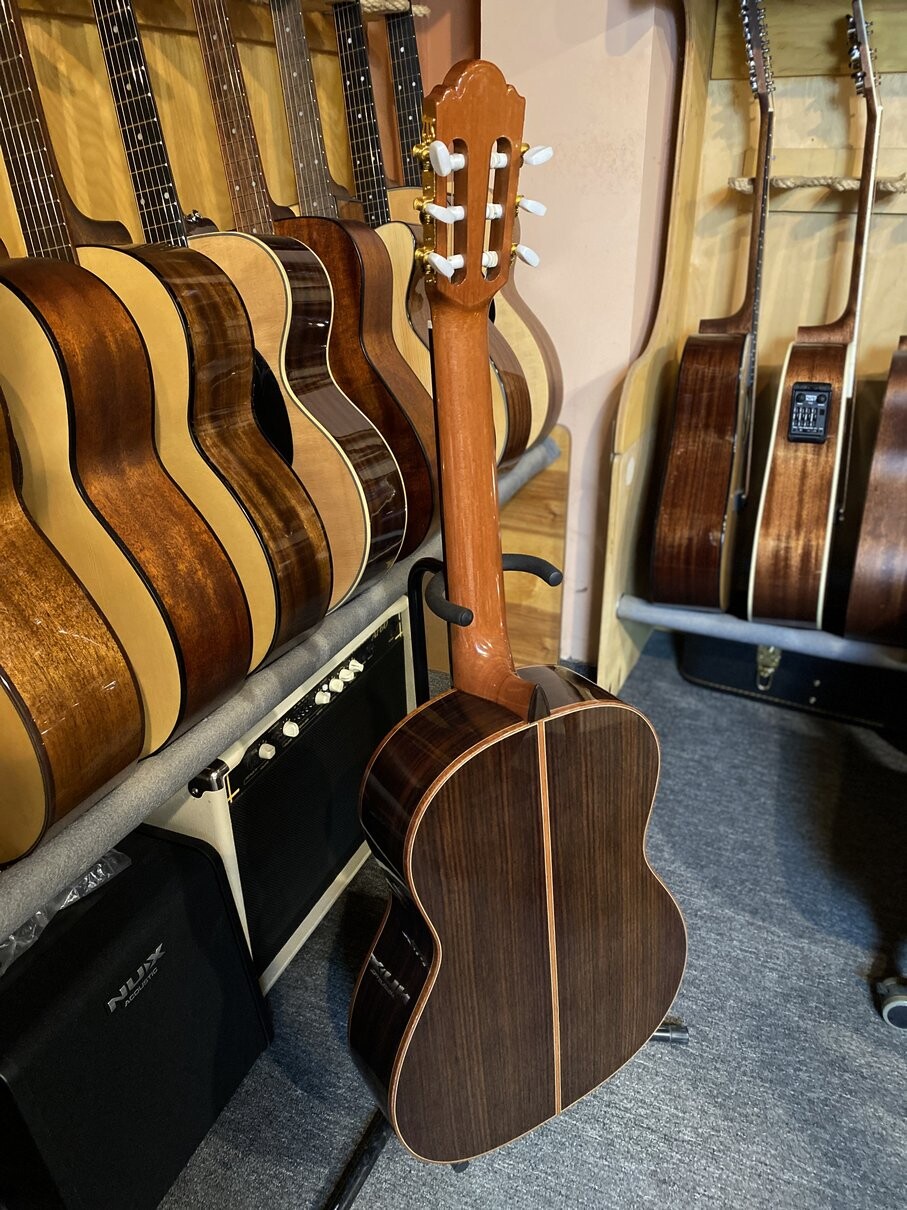 Полномассивный инструмент европейского производства из кедра и палисандра. Отличается басовитым бархатным тоном.