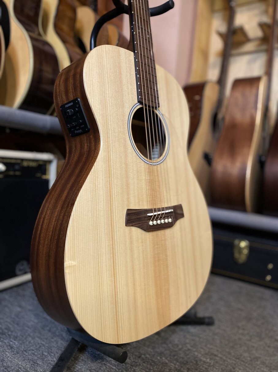 Добротная электроакустика среднего класса небольшой оркестровой формы с матовой лаконичной отделкой и электроникой Fishman. Открытое, насыщенное красивыми звонкими обертонами, звучание.