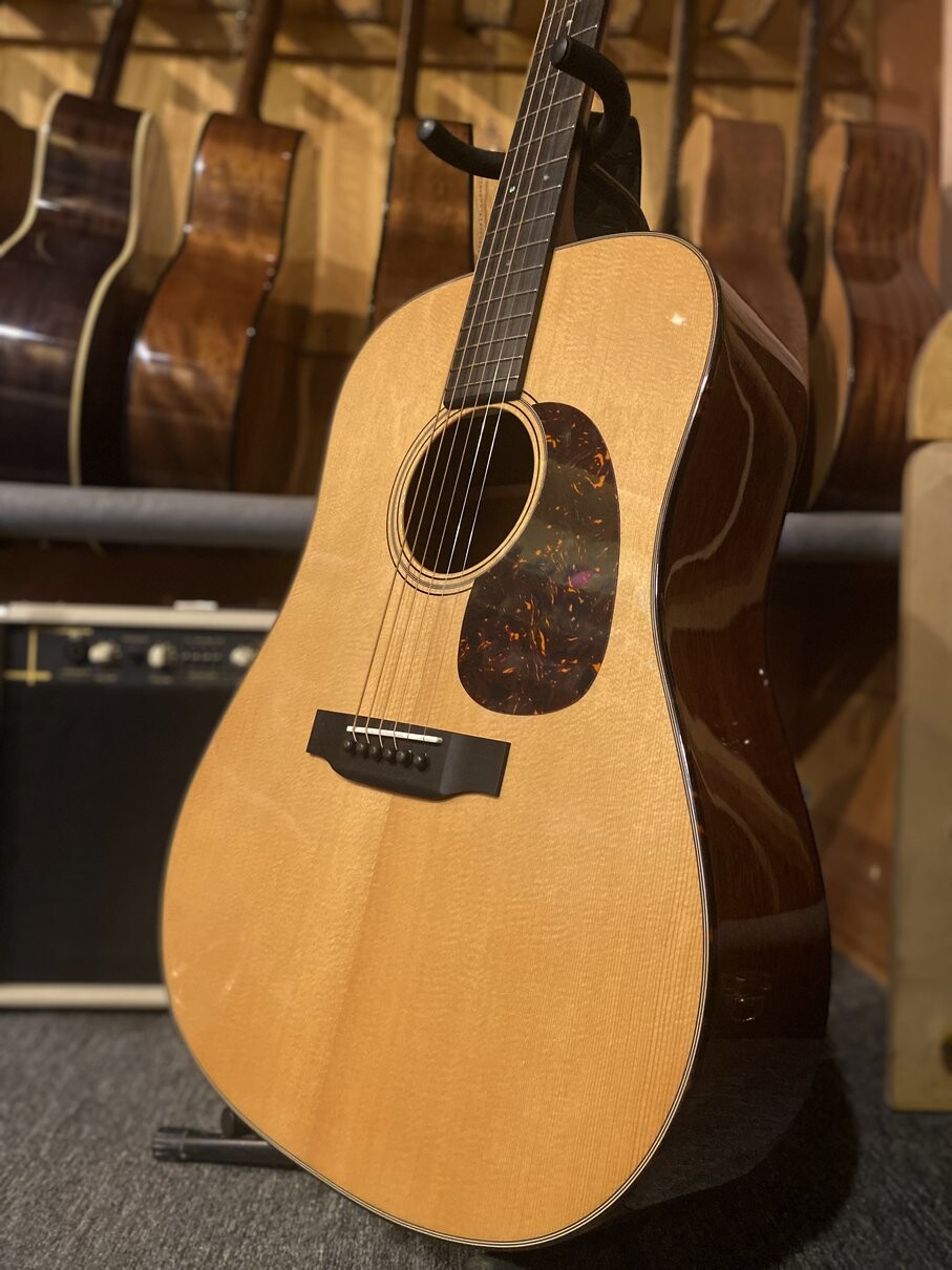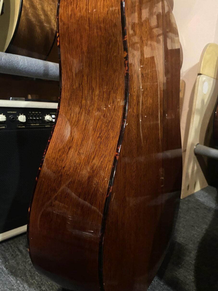 Цельномассивный инструмент с классическим сочетанием пород ситхинской ели и махагона класса AA. Великолепный сустейн и узнаваемый американский саунд. Идеален для корневой музыки, блюза, рока, прекрасно подходит как для медиаторной техники так и для игры пальцами. Ширина грифа этой гитары 44,5 мм. Винтажные открытые колки, накладка грифа и бридж из черного дерева. Черепаховый окрас окантовки и каплевидной защиты. Фирменный мягкий кейс в комплекте.