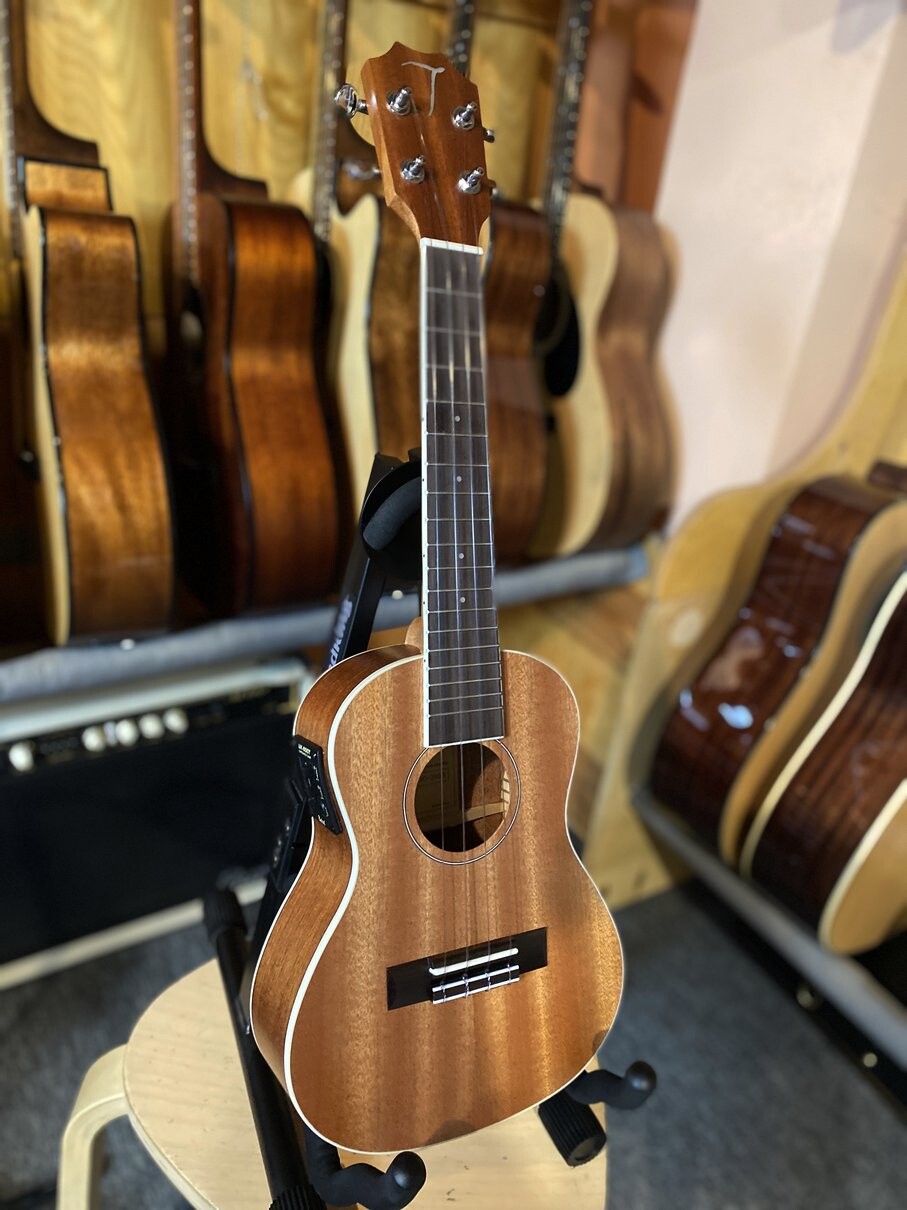 Традиционный укулеле-концерт со звукоснимателем из сапеле с окантовкой из ABS цвета слоновой кости. Чехол в комплекте.